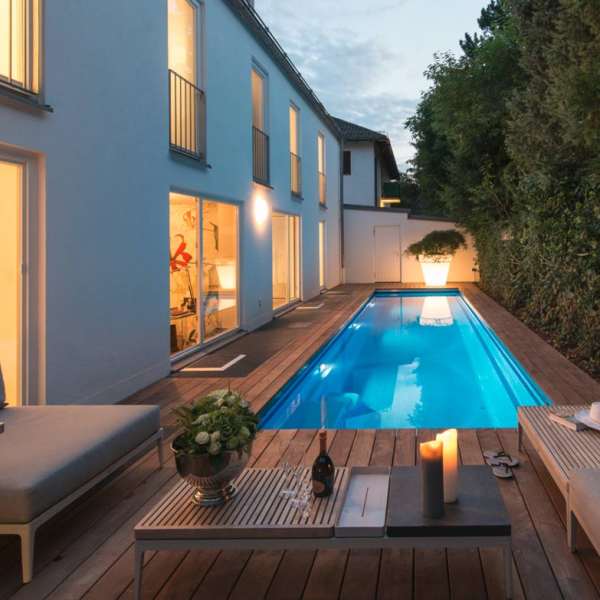 Ses proportions compactes et son escalier intégré font de cette piscine un atout pour chaque type de maison familiale, à la fois pour le jardin et pour l’intérieur. Il est également possible de l’installer dans un bassin de piscine existant.