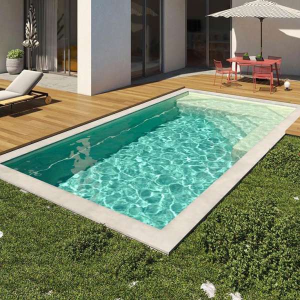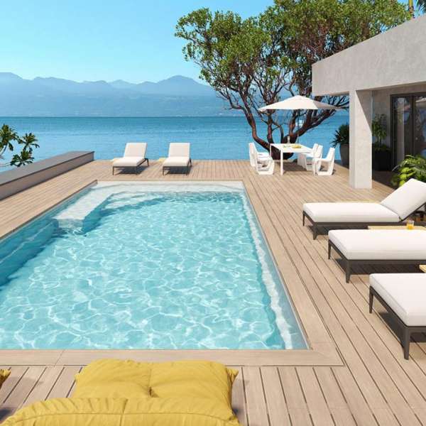 Le modèle piscine Tempo 86 avec ses 8,50 mètres de long, ses 4,20 mètres de larges et une profondeur de 1,70 mètres au niveau du grand bain, elle sera parfaite pour sublimer votre jardin. De plus, elle possède une grande banquette qui ravira petits et grands. En l’agrémentant d’équipements tels qu’une balnéo, une pompe à chaleur et/ou une nage à contre-courant, cette piscine polyester pourra également devenir, en été comme en hiver, un espace de détente après une dure journée. Vous pourrez vous entraîner pour les plus sportifs ou simplement vous détendre dans les bulles.